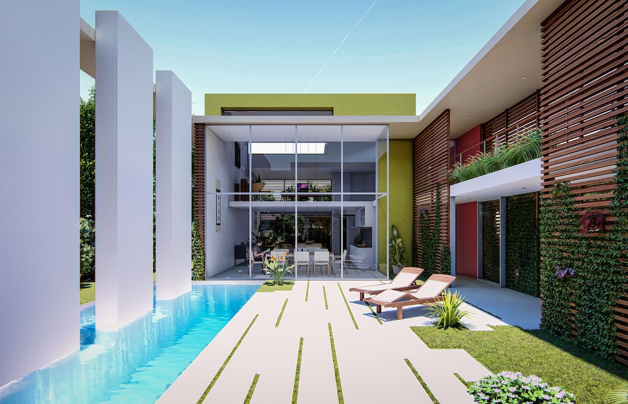 This simple but complex house provides the necessary privacy of the view of the neighbors without renouncing the light and open spaces.